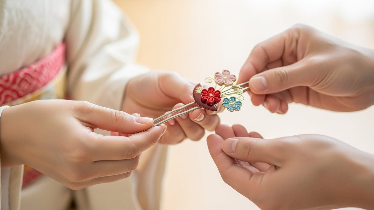 家族行事で簪が贈られる場合、家族間の絆や節目を示す意味合いが強くなります。成人式やお祝いの席での贈呈は、家族としての歓迎や承認を意味することがあります。年長者からの贈り物なら伝統や由緒を意識して選ばれることが多いです。
