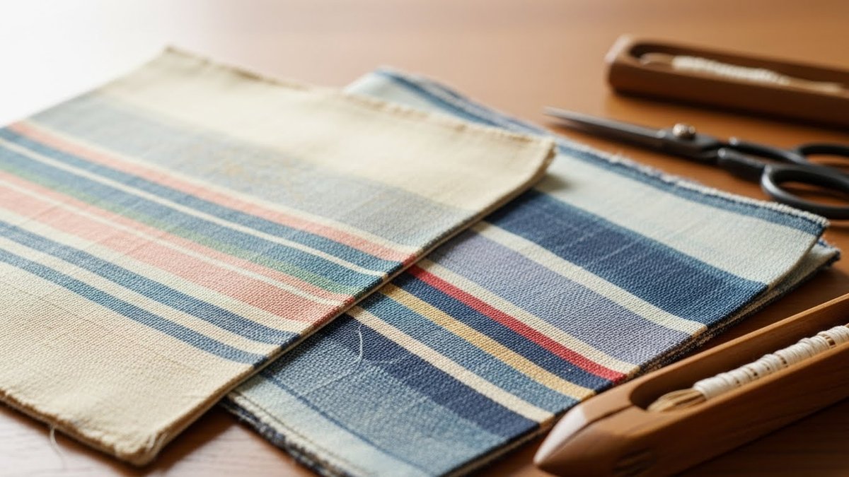 縞は着用時の見栄えに直結するため、服地として使いたい場合は縞の方向や幅を念頭に置いて選んでください。縞の間隔が揃っているかどうかで仕立てのしやすさも変わります。