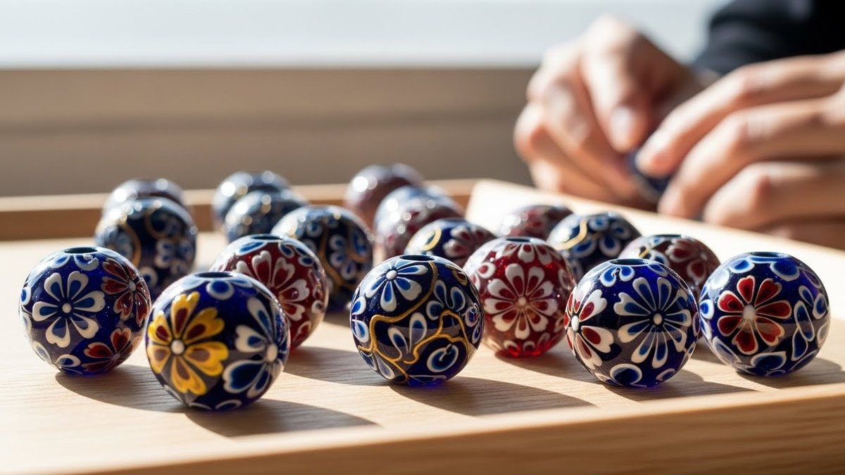 この技法は、特に「江戸風鈴」や、とんぼ玉の中でも特定の文様を大量に必要とする場面で応用されました。しかし、日本の職人のこだわりはここでも発揮されます。型で作ったベースの上に、さらに手作業で細かな絵付けを施したり、複数の型を組み合わせて複雑な造形を作ったりと、量産と手仕事を高度に融合させたのです。
